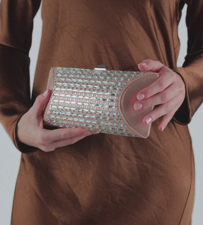 Clutch a mano in camoscio lamè con baguettes